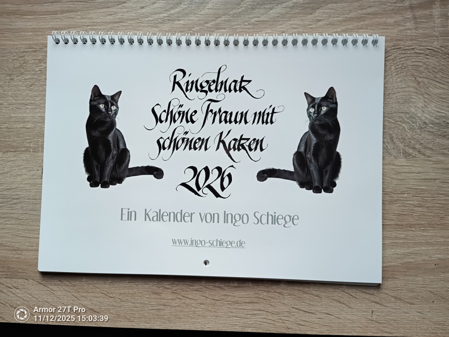 Der kalligrafische Katzenkalender 2026, auch unsere Stubentiger möchten natürlich einen schönen Kalender mit kalligrafisch geschriebenen Katzensprüchen. Auch hier bleibt der Preis stabil, 10 Euro plus 2 Euro Versand.