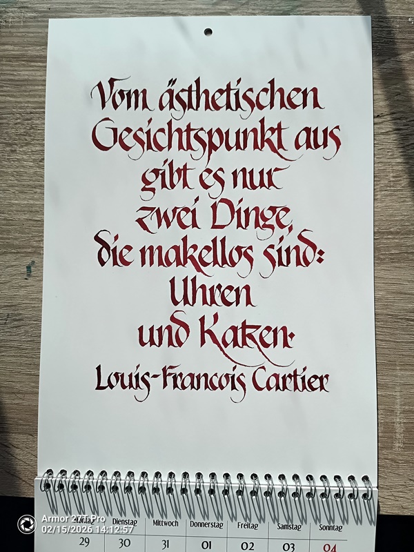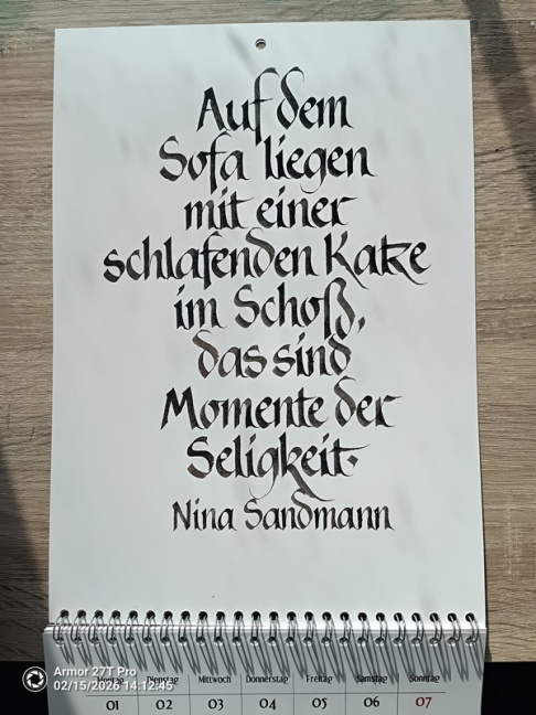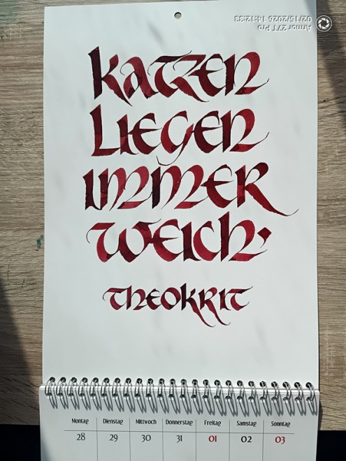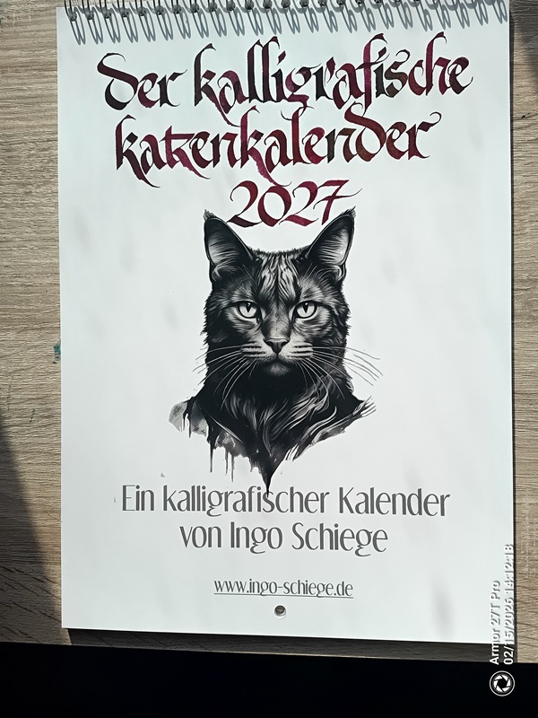 Natürlich darf auch im Jahr 2027 der spezielle Kalender für unsere pelzigen Freunde nicht fehlen. Wieder gibt es 12 schöne Sprüche über Katzen , von mir kalligrafisch gestaltet.